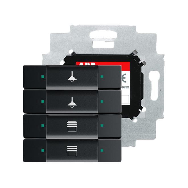 Tryckknapp för montering på bifogad busskopplare. Används för manövrering av till/från eller dimmerfunktion.