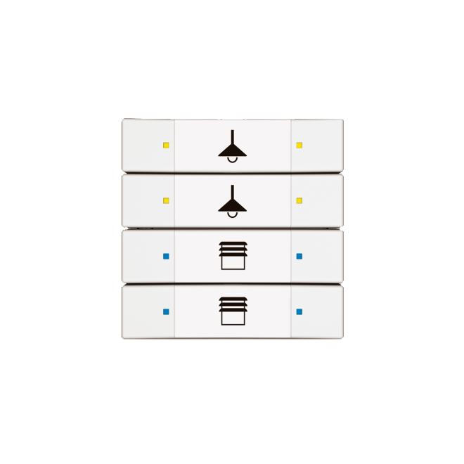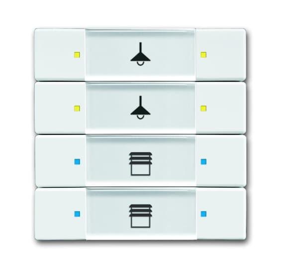 Multifunktionstryckknapp med textfält och LEDdioder. 9 logiska villkor i 5 st olika block. Används med E1751115 eller med 6120/13 E1750113.