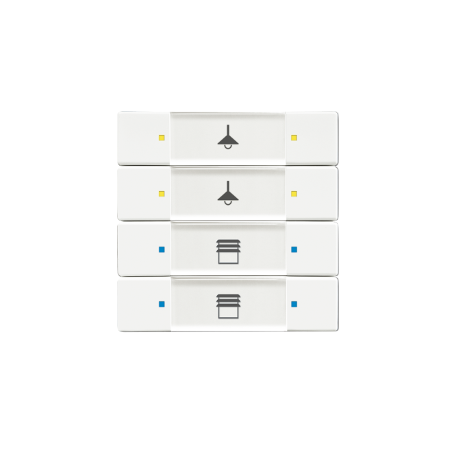 Multifunktionstryckknapp med textfält och LEDdioder. 9 logiska villkor i 5 st olika block. Används med E1751115 eller med 6120/13 E1750113.