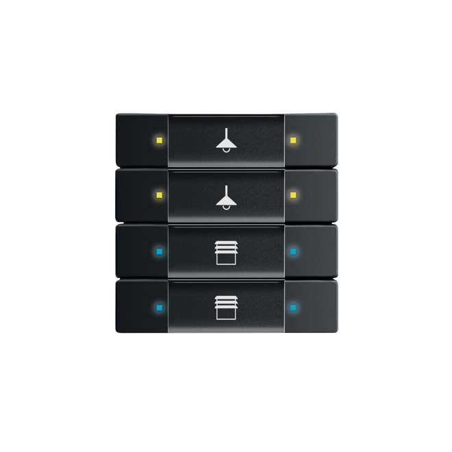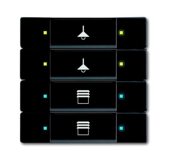 Multifunktionstryckknapp med textfält och LEDdioder. 9 logiska villkor i 5 st olika block. Används med E1751115 eller med 6120/13 E1750113.