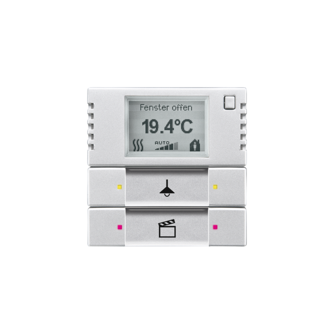 För styrning av standard ställdon eller analoga ställdon för reglering av värme- och kylsystem med ABB i-bus® KNX. Det är även möjligt att manuellt styra fläktkonvektorernas effektsteg. Utöver termostatfunktionen innehåller enheten även en 2-polig tryckknapp. Används tillsammans med busskopplarre typ 6120/12-101-500 eller 6120/13-500. Täckramar beställs separat, se lista 18.