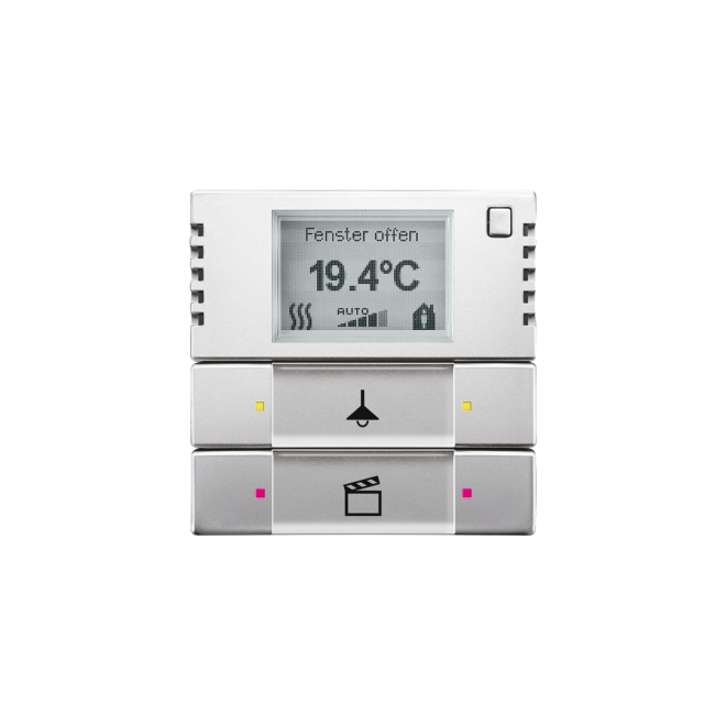 För styrning av standard ställdon eller analoga ställdon för reglering av värme- och kylsystem med ABB i-bus® KNX. Det är även möjligt att manuellt styra fläktkonvektorernas effektsteg. Utöver termostatfunktionen innehåller enheten även en 2-polig tryckknapp. Används tillsammans med busskopplarre typ 6120/12-101-500 eller 6120/13-500. Täckramar beställs separat, se lista 18.
