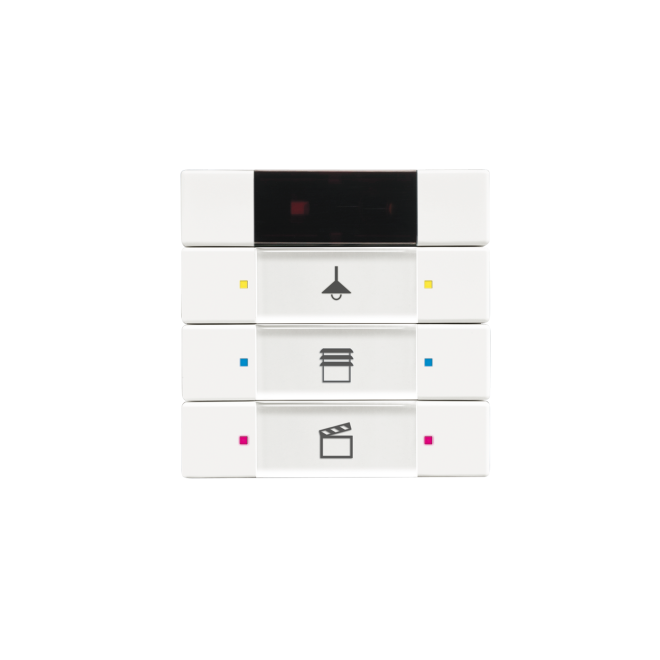 Multifunktionstryckknapp med textfält och LED och IR. 13 logiska block. Används med E1751115 eller med 6120/13 E1720113.