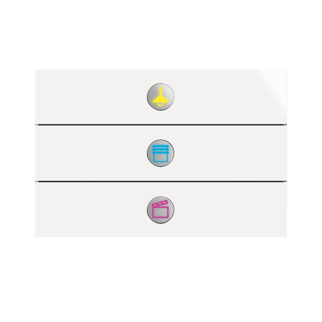 3/6-vippa priOn multif. tryckknapp i frostat vitt glas. Till ram 1-fack E1750561, 2-fack E1750562 eller 3-fack E1750563.