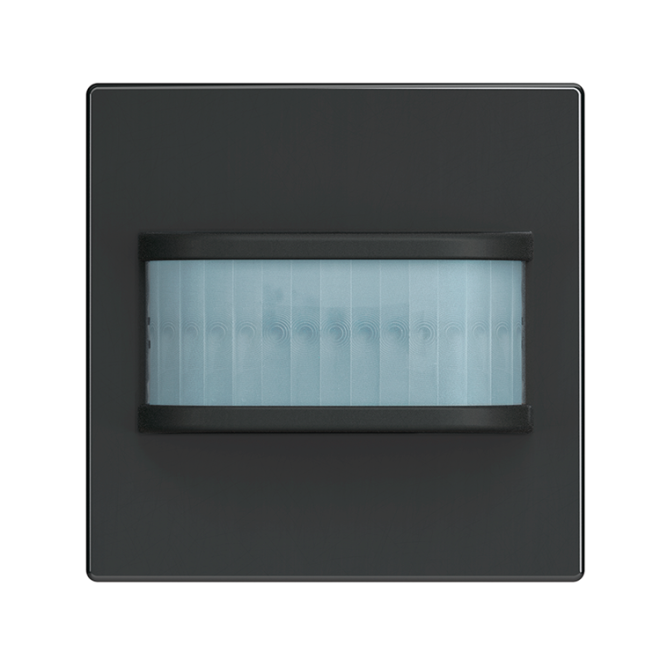 Rörelsesensor basic för styrning av ljus i Impressivo-design, färg svart matt. Beroende på inställd ljusstyrka (5 - 500 lx.) känner rörelsesensorn av rörelse och tänder ljuset under den inställda tiden (10 sek. - 30 min.) efter sista rörelsen. Relä, e-kontakt eller dimmer Flexinsats måste beställas separat.