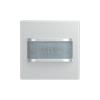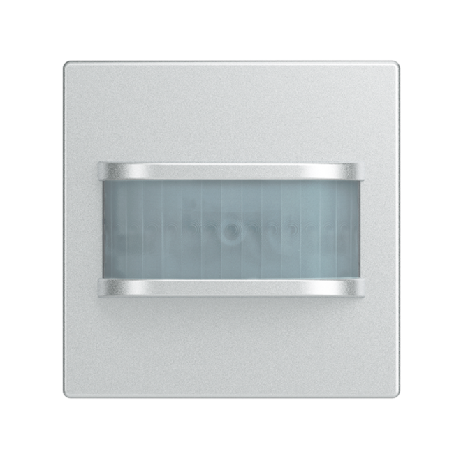 Rörelsesensor Komfortsensor för styrning av ljus i Impressivo-design, färg alu. Beroende på inställd ljusstyrka (5 - 500 lx.) känner rörelsesensorn av rörelse och tänder ljuset under den inställda tiden (10 sek. - 30 min.) efter sista rörelsen. Komfortsensorn har en impulsbrytare på utsidan så att denna kan manövreras för att ställa in rörelsesensorn i man./aut., av/på, dim upp/ner, allt beroende på ansluten insats. Relä, e-kontakt eller dimmer Flexinsats måste beställas separat.