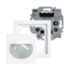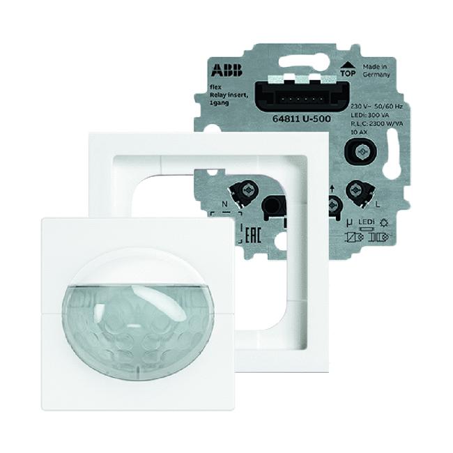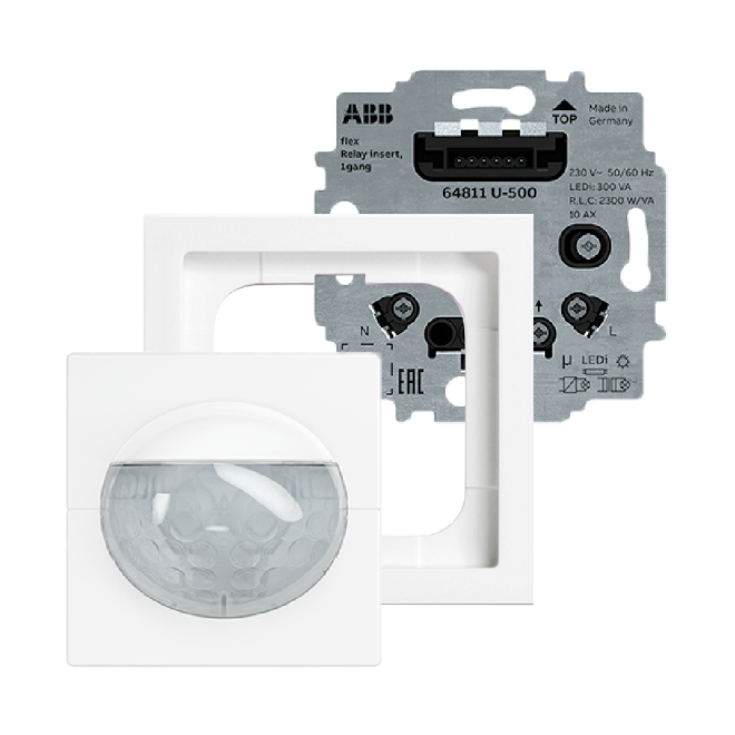 Rörelsesensor för ljusstyrning. Beroende på inställd ljusstyrka (5 - 500 lx.) känner rörelsesensorn av rörelse och tänder ljuset under den inställda tiden (10 sek. - 30 min.) efter sista rörelsen. Multisensorn har en impulsbrytare på utsidan så att denna kan manövreras för att ställa in rörelsesensorn i man./aut., av/på, dim upp/ner, allt beroende på ansluten Flex-insats. Detta kompletta kit innehåller 64811 U-relä, 64764-84 PIR180 Multisensor och enkelram. Levereras i vitt Impressivo-design.