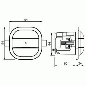 | Minsta djup på infälld installationsdosa: | 60 mm |