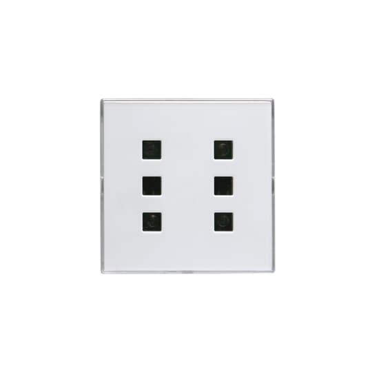Impressivo centrumdelar för Jussi-signalprodukt: FIM1300. Innehåller de delar som behövs för att ändra Jussi-seriens signalprodukt till motsvarande produkt i Impressivo-serien. Markeringsmöjlighet under det stora linsskalet. Vit.