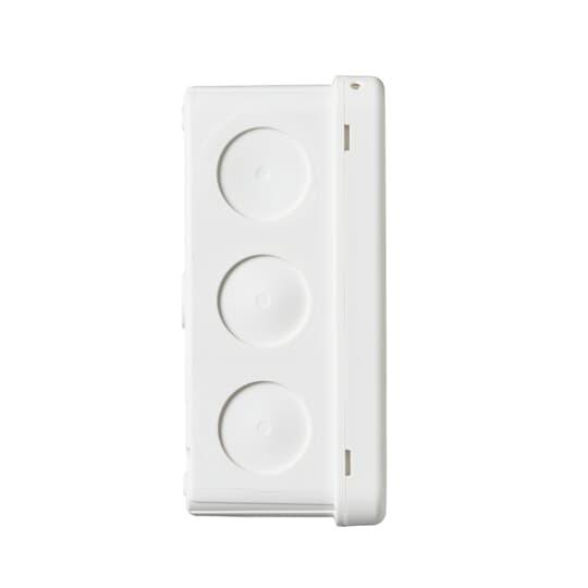 Tvåkomponent kopplingsdosa (6 mm², 500V) försedd med inbyggda "strypnipplar"; 12st. införingar i sidorna och 2st. i botten. Man för in kabel genom att trycka igenom membranet och kabeländorna. För kablar max. Ø 19 mm. Dosan stängs med ett tryck på varje hörn i locket (snap-on). Vid behov öppnas locket genom att lätt vrida med en skruvmejsel under kanten. Dosan kan förses med dragavlastare AS9.10, AS9, AS 9.1 och AS9.3. Monteringstemperatur -25 ... + 60° C Tillverkad av halogenfritt och UV-stabiliserat material (IEC/61249-2-21)