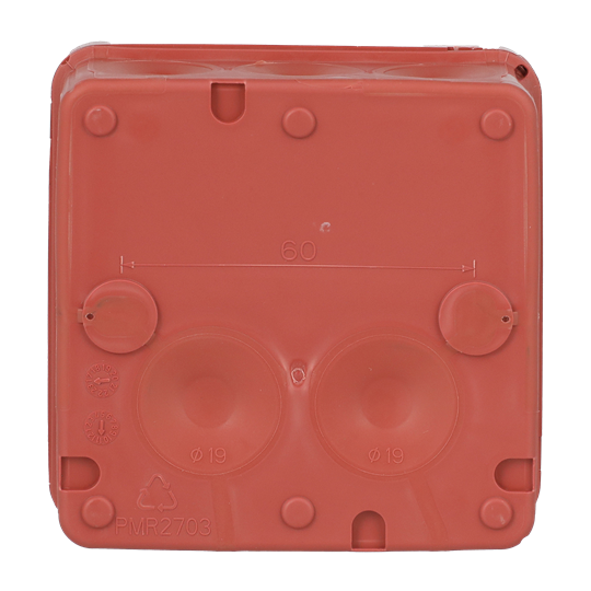 Den kvadratiska anslutningsboxen AP9R (2,5 mm², 500V) är utrustad med 10 membrankabelanslutningar för kablar upp till Ø 17 mm i sidorna, och två i botten för kablar upp till Ø 19 mm. Kablarna är lätta att ansluta genom att helt enkelt trycka in de avfasade ändarna genom inloppen. Dosan stängs med ett tryck på varje hörn på locket (snap-on). Vid behov öppnas locket genom att lätt vrida med en skruvmejsel under kanten. Lådan kan förses med dragavlastningar AS9.10, AS9, AS9.1 och AS9.3, som passar för Ø 6 - 15,5 mm kabel. VDE-godkänd. Monteringstemperatur -25 ... + 60° C. Tillverkad av halogenfritt och UV-stabiliserat återvunnet material (IEC/61249-2-21)
