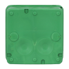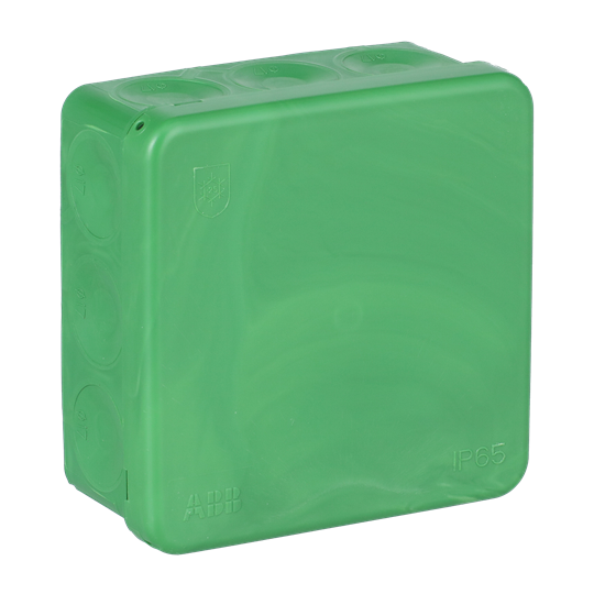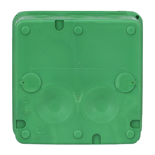 Den kvadratiska anslutningsboxen AP9V (2,5 mm², 500V) är utrustad med 10 membrankabelanslutningar för kablar upp till Ø 17 mm i sidorna, och två i botten för kablar upp till Ø 19 mm. Kablarna är lätta att ansluta genom att helt enkelt trycka in de avfasade ändarna genom inloppen. Dosan stängs med ett tryck på varje hörn på locket (snap-on). Vid behov öppnas locket genom att lätt vrida med en skruvmejsel under kanten. Lådan kan förses med dragavlastningar AS9.10, AS9, AS9.1 och AS9.3, som passar för Ø 6 - 15,5 mm kabel. VDE-godkänd. Monteringstemperatur -25 ... + 60° C. Tillverkad av halogenfritt och UV-stabiliserat återvunnet material (IEC/61249-2-21)