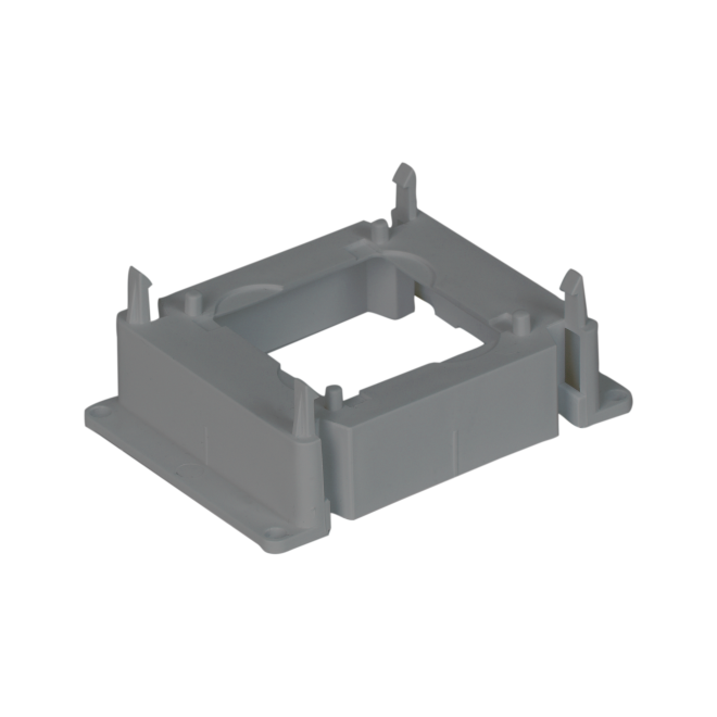 Det modulbaserade distansfästet har stora limytor. Kan även monteras med skruv. Höjden på distansfästet är 25 mm. Tack vare modul uppbyggnaden kan väggens regeldimensionering vara 70, 95, 120 mm osv... Passar både apparat- och kopplingsdosa. Tillverkad av halogenfritt material (IEC/61249-2-21). Var tidigare vit men är nu grå då vi bytt material till 100% återvunnen Polypropylen.