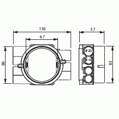 Kopplingsdosa / Spisdosa för 12-13/24-26 mm skiva, 7 fasta stutsar, 5 x 16mm och 2 x 20mm (EI30/EI60)