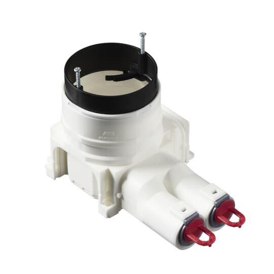 Apparatdosa AUB60H-R är speciellt designad för ingjutning både off-site och on-site-gjutning. Dosans höjd är 82 mm. Dosan innehåller två inlopp med låsfjädrar för 20 eller 25 mm rör. Ytterligare inlopp kan fästas på andra sidor utan behov av verktyg. Apparatdosan innehåller en roterande, steglöst justerbar installationsring. Installationsringen kan tiltas 0-4º. Doskombinationer kan skapas utan extra tillbehör och dosan har stort innerutrymme. Tillverkad av halogenfritt material (IEC/61249-2-21). Max antal ledare är 30 st.