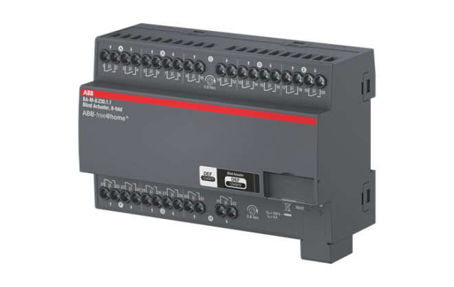 För styrning av 8 oberoende persienn- eller rullgardinsdrivningar. Bussen kan anslutas via medföljande terminalblock.