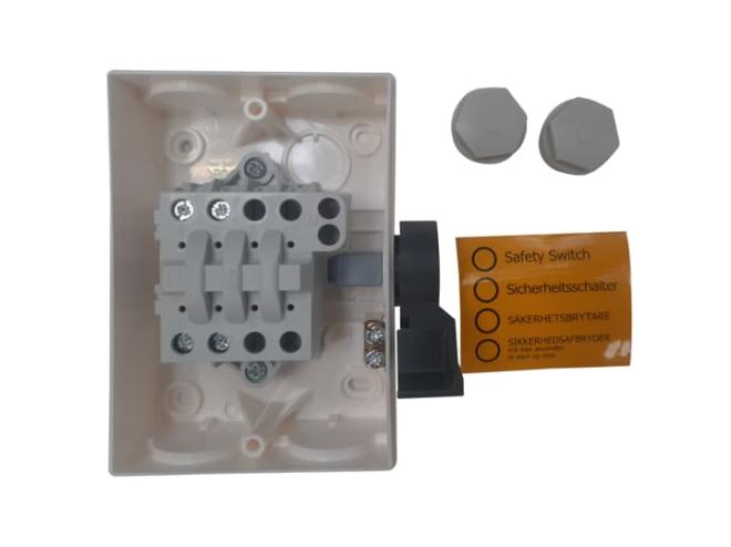 Säkerhetsbrytare plastkapslad 2-pol 16A vit kapsling UL94-5VA för lantbruk, UV beständig, utan hjälpkontakt