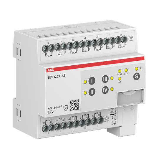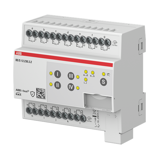 Registrerar AC/DC-signaler i spänningsområdet 10...230 V. Ingångens status visas med gula lysdioder. via gula lysdioder. De binära ingångarna möjliggör detektering av oberoende ingångssignaler. Enheterna har en tryckknapp för manuell drift för varje kanal. Enheterna strömförsörjs via ABB i-bus® och kräver ingen extra strömförsörjning. Enheterna stöder KNX Data Secure.