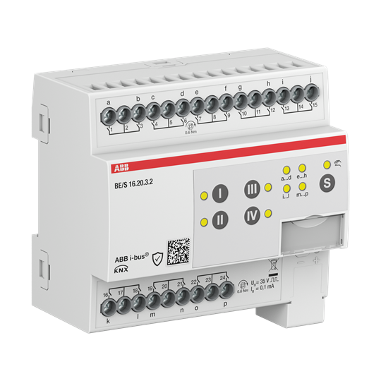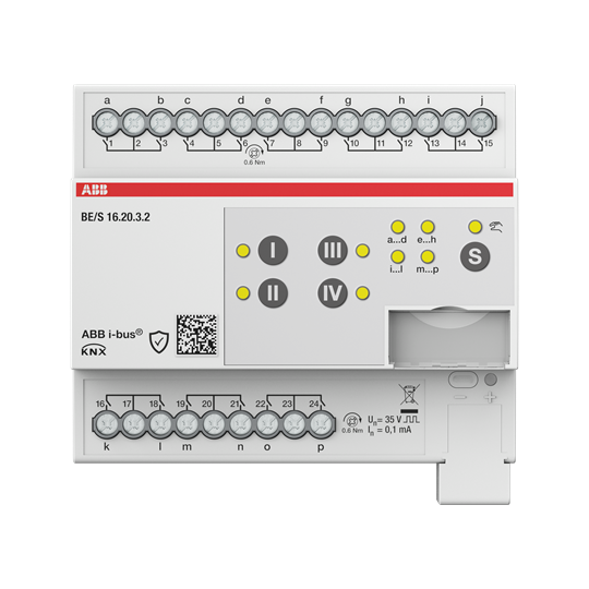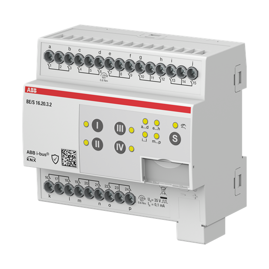 Avkänning av potentialfria kontakter med internt genererad avkänningsspänning. Ingångens tillstånd visas via Enheterna har en tryckknapp för manuell drift för varje kanal. Enheterna strömförsörjsvia ABB i-bus® och kräver ingen extra strömförsörjning. Enheterna stöder