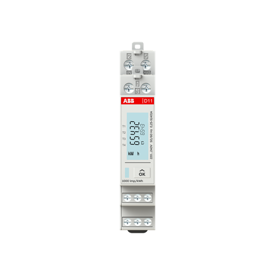 Elmätare 1-fas upp till 40A. Klass B enligt MID. Fyrkvadrantsmätning. M-Bus. 1 DIN-modul, 70 % återvunnen plast.