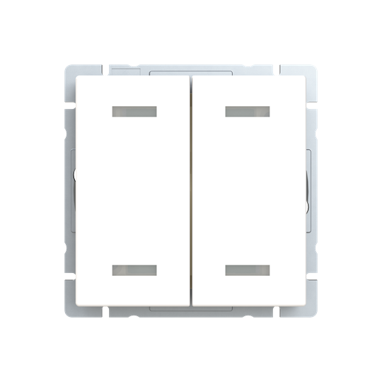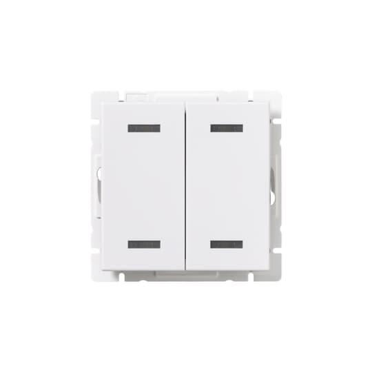4/2-vägs tryckknapp för att styra bistabila reläer eller elektroniska styrsystem. Lastkapacitet (5-24V) 1A AC/DC. Vit LED-lampa med justerbar belysning. För infällt montage