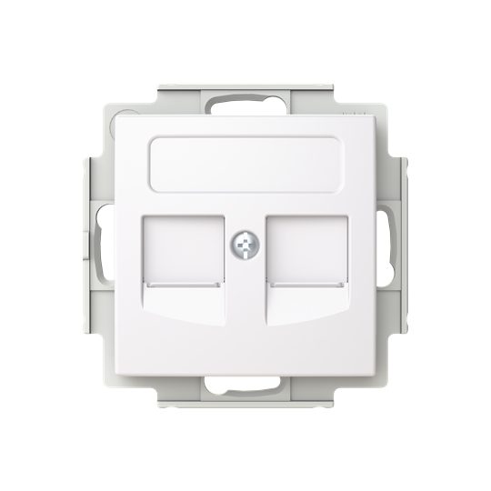 Platt datauttag SAGA för två Actassi RJ45-kontakter. Kontakterna ingår inte. Biocirkulär plast används i centrumplattan.