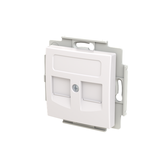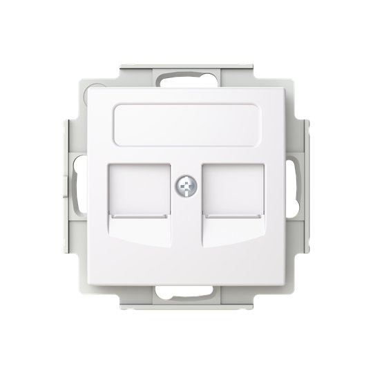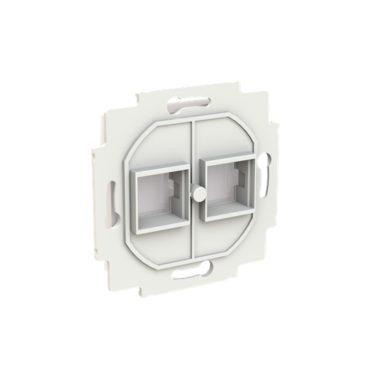 Platt datauttag SAGA för två Systimax RJ45-kontakter. Kontakterna ingår inte. Biocirkulär plast används i centrumplattan.