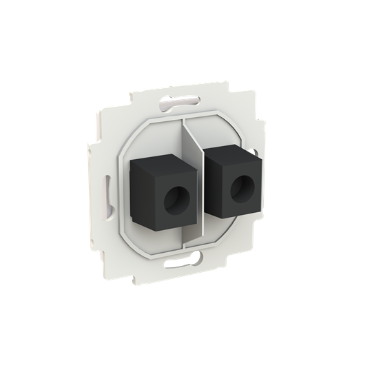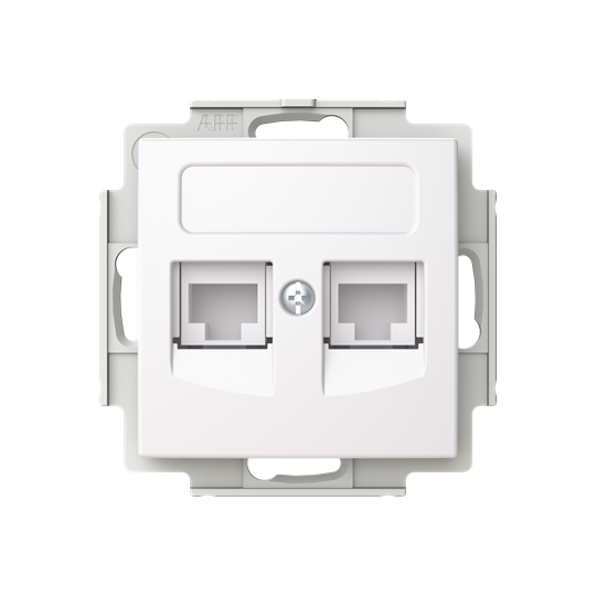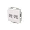 Platt datauttag SAGA för två AMP RJ45-kontakter. Kontakterna medföljer. Biocirkulär plast används i centrumplattan.