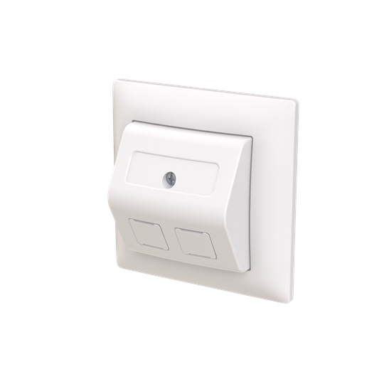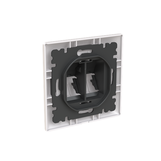 Vinklat RJ45-uttag SAGA utan kontakt. Biocirkulär plast används i ramen och centrumplattan.