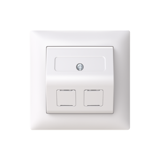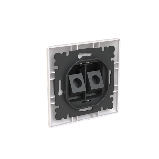 Vinklat RJ45-uttag SAGA med Keystone-kontakter. Biocirkulär plast används i ramen och centrumplattan.