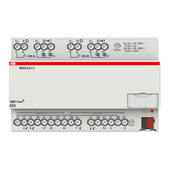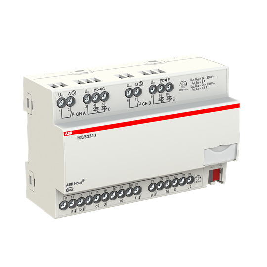 För styrning av en värme-eller kyl krets. Enheten har 2 kanaler, var och en med två elektroniska utgångar för att styra en motordriven blandningsventil (3-punkt) av en värme-eller kyl krets samt en reläutgång (5A) för att växla pumpen av kretsen. Via 3 binära ingångar är det möjligt att övervaka status för pumpen (via potentiella fria kontakter) och integrera dessa feedback i kontrollen av pumpen. Flödes-och retur flödes temperaturen mäts och används för beräkning av kontroll svärdet för ventil utgången i den integrerade styrenheten. Den inställda punkt temperaturen tas emot via KNX-bussen. Genom att slå ihop båda kanalerna på enheten är det också möjligt att använda den för dubbel pumpsystem (redundans). Enheten stöder ABB i-Bus Tool för avancerad diagnostik och förbättrad driftsättning.