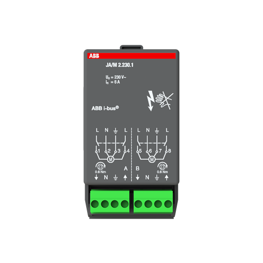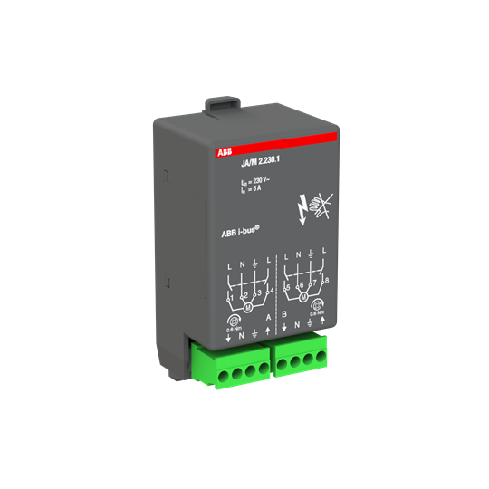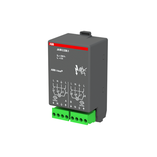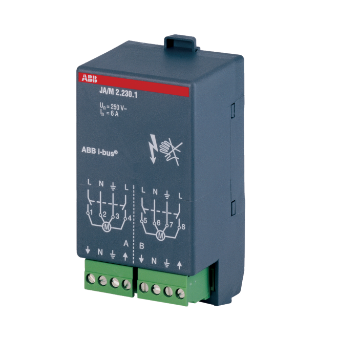 Jalusiaktor 230 V AC, 2- kanaler, för montering i rumskontrollerbox. 2 potentialfria kontakter för 230 V 50 Hz ,6 A-AC3.