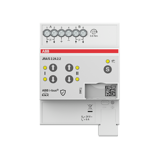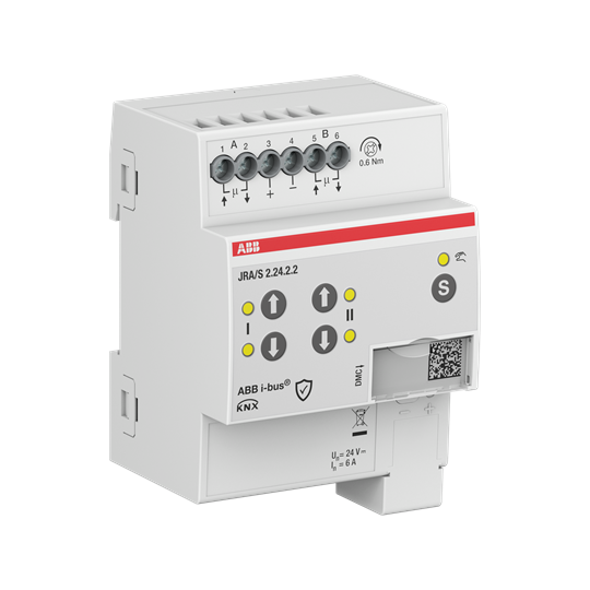 För styrning av upp till 4 oberoende 24 VDC-motorer via ABB i-bus® KNX. Enheten är utformad för positionering av persienner, rulljalusier, markiser och samt för styrning av dörrar, fönster och ventilation. Någon extra hjälpspänning behövs inte. Tryckknappar finns på enhetens framsida för att styra utgångarna, t.ex. under körning. Utgångens aktuella status visas via lysdioder om utgången är vald