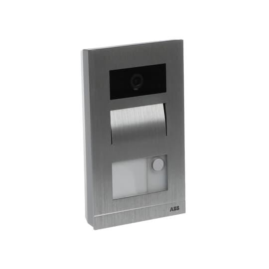Komplett porttelefon för enfamiljshus. Installeras utanpåliggande. Behöver ingen installationsdosa. Automatisk infrarött ljus nattetid för tydlig bild från kameran. Nattbelysning. Har två utgångar för lås, en 18 V och en potentialfri. Klassificering IK07, IP54.