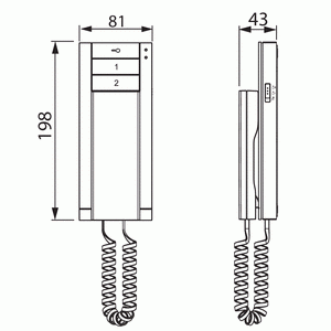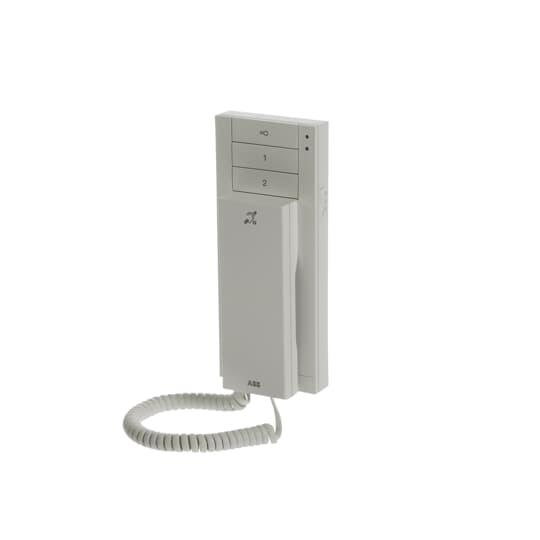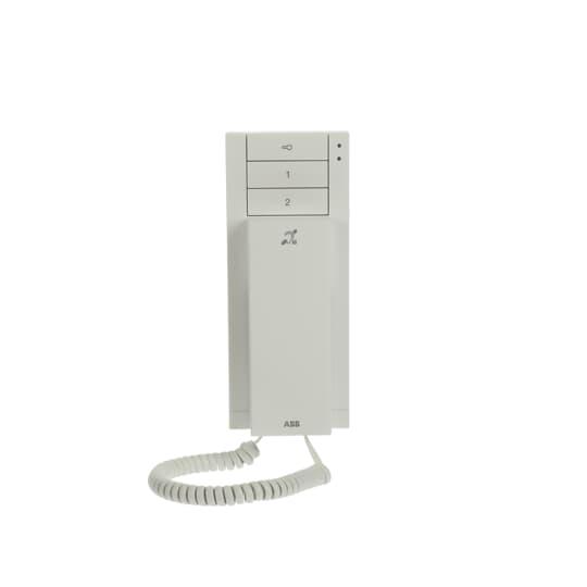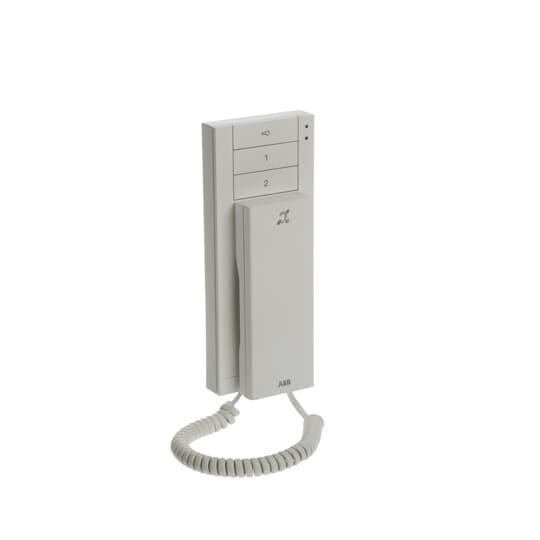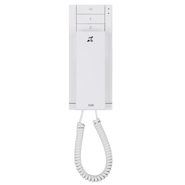 Svarsapparat med telefonlur och hörselslinga. Extraknappar för ex snabbtelefon, ringa vakt och upplåsning av extradörr. 5 ringsignaler för olika samtalskällor, justerbar volym (max-mid-mute). Visuell indikering av öppen dörr. Hörselslinga är standard.