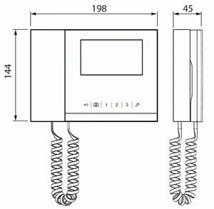 4,3" touchskärm för intuitiv användning (upplösning 480*272 pixel). 6 tryckkänsliga knappar med användarvänliga ikoner. Snabbtelefon mellan vaktenhet och inomhusstation, utomhusstation eller annan vaktenhet. Många funktioner, t.ex avlyssningsläge för säkerhet, namnsökning, kameraövervakning, lagring av obesvarade samtal och larmmeddelanden. Upp till 1 000 namn kan lagras. Totalt upp till 9 vaktenheter för varje byggnad. Både utanpåliggande montering och skrivbordsställ finns.