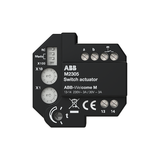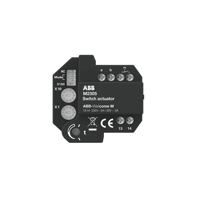 Reläaktor med utgång för anslutning till ett elektroniskt lås eller belysning och utgång för lokal tryckknapp. 3 arbetslägen: upprepande ringning, öppna dörrlås, tidsrelä.