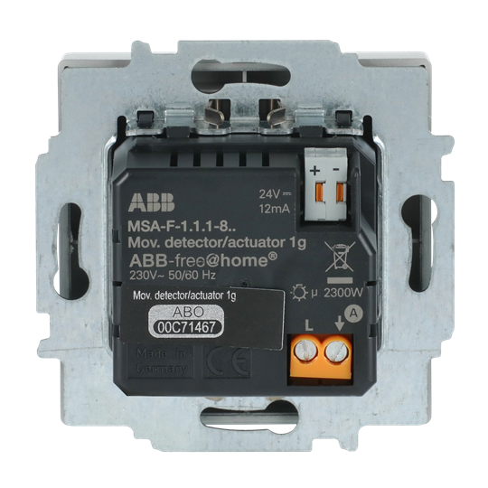 För automatisk omkoppling av ABB-free@home® aktorer beroende på rörelse och ljusstyrka. Frånslagsfördröjning kan programmeras via webbgränssnittet av System Access Point. Decentraliserad installation.