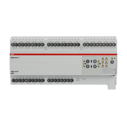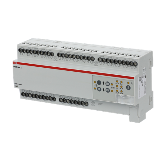 Den kompakta 6A kombiaktorn har 24 oberoende utgångar (ej elektromekaniskt sammankopplade). Utgångarna kan användas individuellt via ABB i-bus® KNX för omkoppling av elektriska laster eller parvis för styrning av 230 V AC jalusier eller markiser. Enheten har en manuell styrning, som också kan inaktiveras. Via manuell manövrering kan utgångarna manuellt köras och växlings- eller körstatus visas. Enheten drivs av busspänning och kräver ingen extra strömförsörjning. Omfattande programmerbara funktioner.
