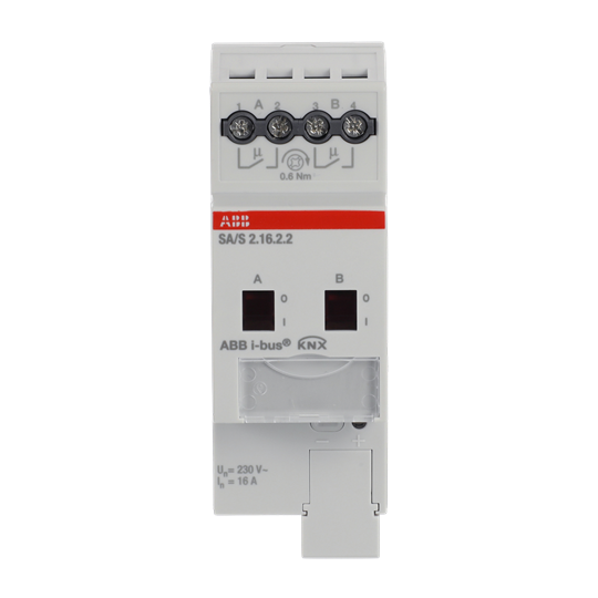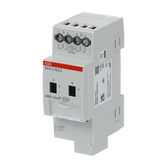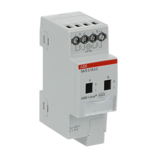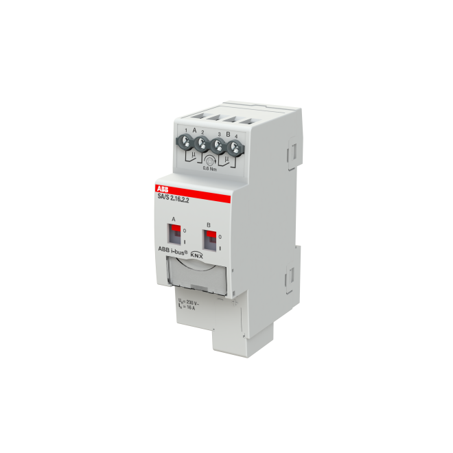 Aktorn använder potentiella fria kontakter för att växla 2 oberoende elektriska belastningar via ABB i-bus® KNX. Enheten har en manuell manövrering och visning av kopplingstillståndet för utgångarna. 16A aktorn är särskilt lämpad för att växla resistiva, induktiva eller kapacitiva laster. Enheten drivs av KNX och kräver ingen extra strömförsörjning. Omfattande programmerbara funktioner.