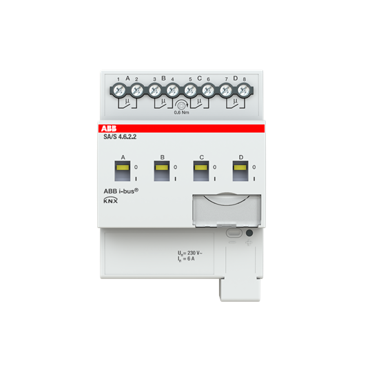 Aktorn använder potentiella fria kontakter för att växla 4 oberoende elektriska belastningar via ABB i-bus® KNX. Enheten har en manuell manövrering och visning av kopplingstillståndet för utgångarna. 6A aktorn är särskilt lämpad för att växla resistiva, induktiva eller kapacitiva laster. Enheten drivs av KNX och kräver ingen extra strömförsörjning. Omfattande programmerbara funktioner.