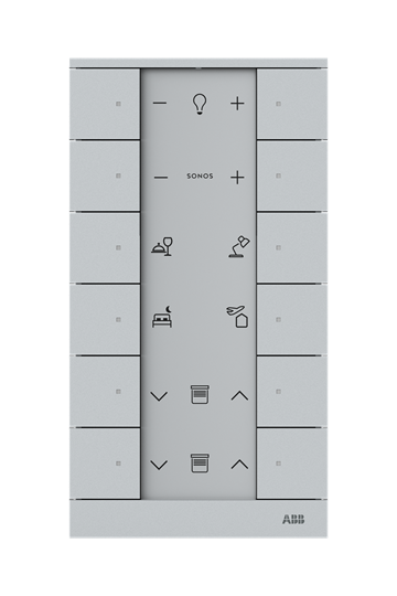 För överföring av växlings-, tryckknapps-, dimmer- och persiennkommandon till en ABB-free@home®-aktor. Med integrerad busskopplare. Med märkningsfält. Med integrerad rumstemperaturreglerare för direkt styrning av värmeaktorer. Inställning av börvärde kan justeras via App eller Paneler. Antal bussabonnenter: 1