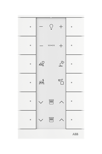 För överföring av växlings-, tryckknapps-, dimmer- och persiennkommandon till en ABB-free@home®-aktor. Med integrerad busskopplare. Med märkningsfält. Med integrerad rumstemperaturreglerare för direkt styrning av värmeaktorer. Inställning av börvärde kan justeras via App eller Paneler. Antal bussabonnenter: 1
