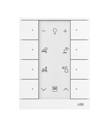 För överföring av växlings-, tryckknapps-, dimmer- och persiennkommandon till en ABB-free@home®-aktor. Med integrerad busskopplare. Med märkningsfält. Med integrerad rumstemperaturreglerare för direkt styrning av värmeaktorer. Inställning av börvärde kan justeras via App eller Paneler. Antal bussabonnenter: 1