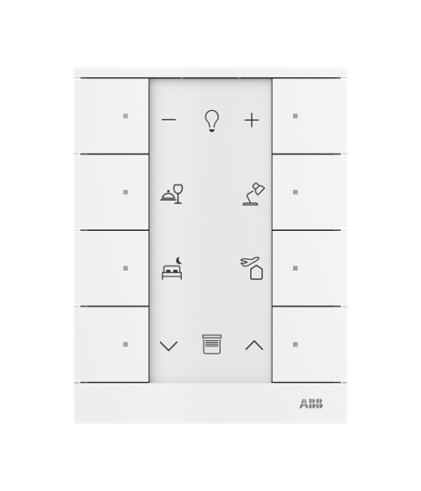 För överföring av växlings-, tryckknapps-, dimmer- och persiennkommandon till en ABB-free@home®-aktor. Med integrerad busskopplare. Med märkningsfält. Med integrerad rumstemperaturreglerare för direkt styrning av värmeaktorer. Inställning av börvärde kan justeras via App eller Paneler. Antal bussabonnenter: 1