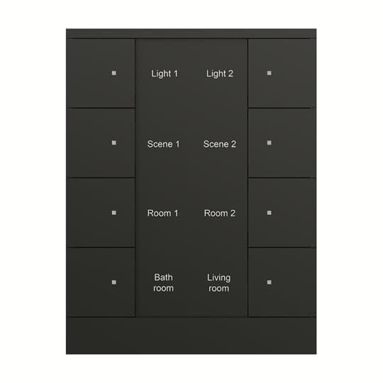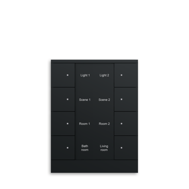 Fritt konfigurerbara multifunktions kontrollelement. Med integrerad KNX-buss kopplare. Med märknings fält. Stöd för KNX-funktioner genom innovativt färg koncept (gult = belysning, blått = blind, orange = RTC, magenta = scen och vit = neutral/ingen funktion tilldelad) eller standardbelysning röd/grön.