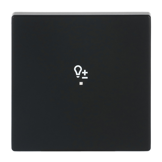 Enkel vippa för alla insatser med 1 kanal. Med symbol för dimmer.