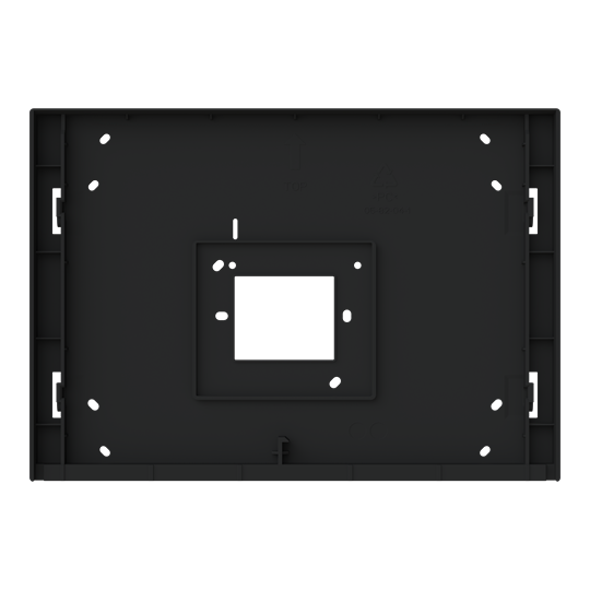 Svart monteringsram för utanpåliggande montage av Smart Touch 10" panel på standard apparatdosa, direkt på väggen eller på äldre väggbox 6136/UP.