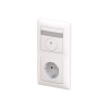 Timerkit SAGA med timer, enkelt schuko-uttag och installationsram. Fasta tidsalternativ: 15 minuter, 30 minuter, 1 timme, 2 timmar, 4 timmar och 8 timmar. Utbytbara etiketter med tidsalternativ för att markera centrumplattan med vald tid. IP21, 2-polig ledning. 10A resistiv belastning (2300 W), 2AX-belastning (till exempel lysrör). Skruvklämmor max 2,5mm2. Signallampan lyser när enheten är aktiv.