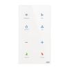 Fritt konfigurerbart multifunktions knapp. Ikonerna och/eller texterna konfigureras med hjälp av ett webb konfigurations verktyg. Med integrerad KNX-busskopplare. Med integrerad temperatur givare. Push switch funktion: till/från/ljusreglering/markis/skicka värden/scener etc. Stöd för KNX funktioner genom innovativt färg koncept (gult = ljus, blått = markis, orange = RTC, magenta = scen och vit = neutral/ingen tilldelad funktion) eller standard belysning röd/grön. RTC är en konstant rums temperatur regulator för Fan-coil i 2-rörs-och 4-rörssystem samt värme-eller kyl system. Fan-coil kan växlas manuellt eller i automatiskt läge. Klass av RTC 1. Bidrar till energi effektivitet för rums uppvärmning 1,0%. Med integrerat KNX-busskoppel.Bussförbindelse via bussklämma.